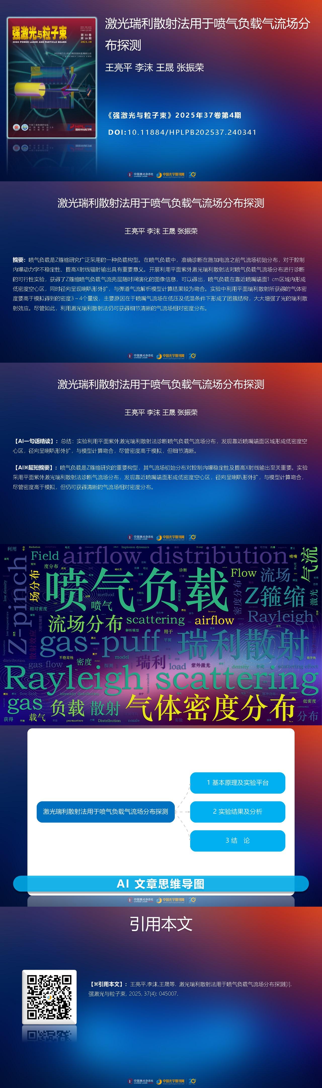 Liangping Wang, Mo Li, Sheng Wang, Zhenrong Zhang. Using Rayleigh scattering method to diagnose the airflow field of Z-pinch gas-puff load[J]. High Power Laser and Particle Beams, 2025, 37(4): 045007