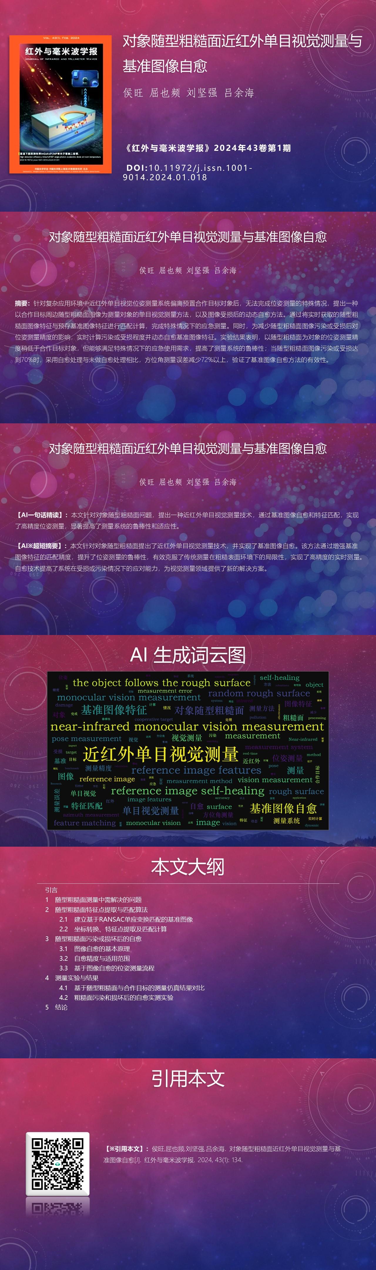 Wang HOU, Ye-Pin QU, Jian-Qiang LIU, Yu-Hai LYU. Near-infrared monocular vision measurement and reference image self-healing of object random rough surface[J]. Journal of Infrared and Millimeter Waves, 2024, 43(1): 134