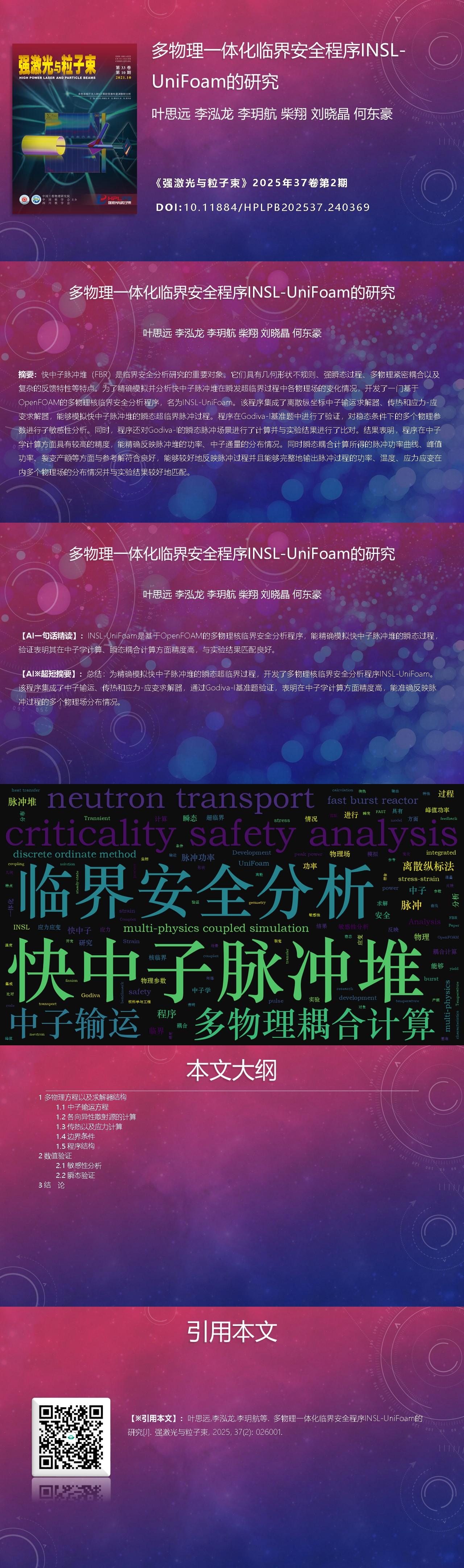 Siyuan Ye, Honglong Li, Yuehang Li, Xiang Chai, Xiaojing Liu, Donghao He. Development of INSL-UniFoam: a multi-physics integrated criticality safety analysis program[J]. High Power Laser and Particle Beams, 2025, 37(2): 026001