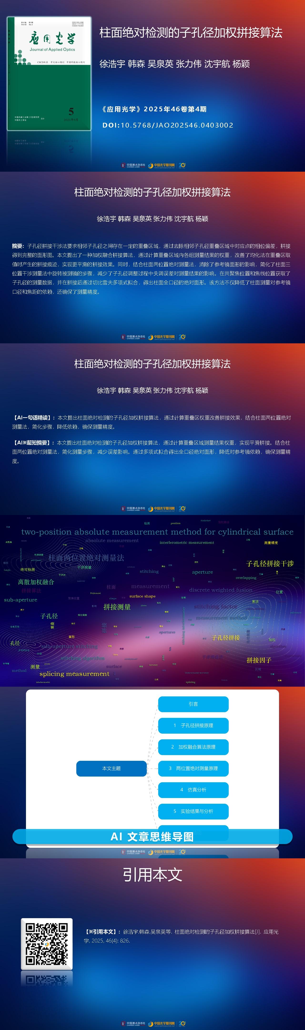 Haoyu XU, Sen HAN, Quanying WU, Liwei ZHANG, Yuhang SHEN, Ying YANG. Sub-aperture weighted stitching algorithm for absolute measurement of cylindrical surface[J]. Journal of Applied Optics, 2025, 46(4): 826