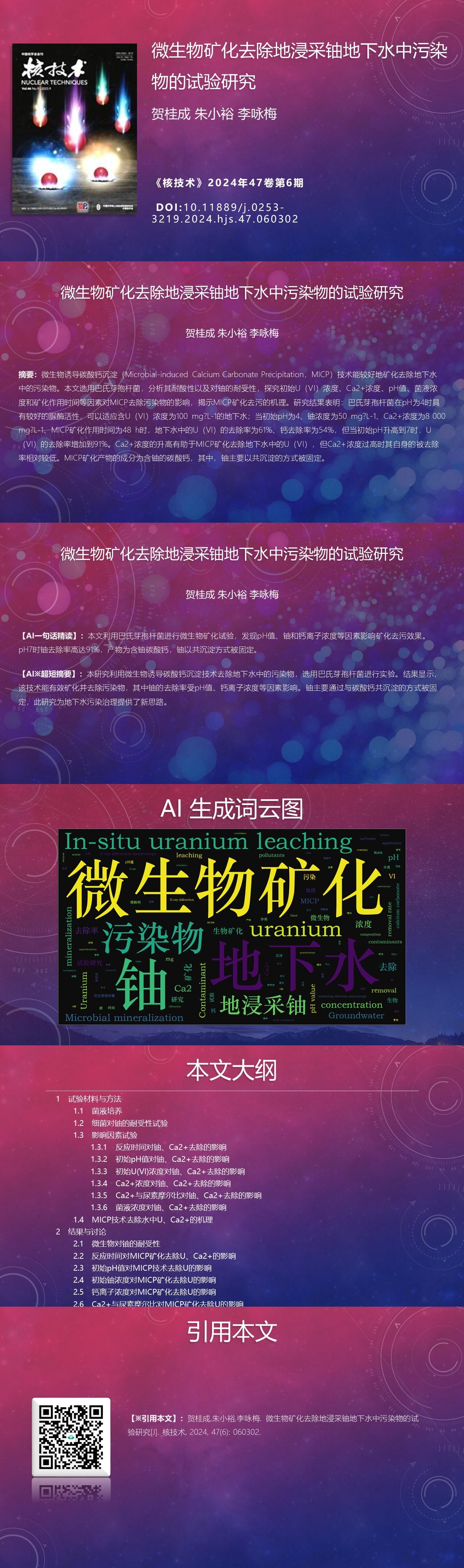 Guicheng HE, Xiaoyu ZHU, Yongmei LI. Experimental study on microbial mineralization for removing contaminants from groundwater in mining areas of in-situ uranium leaching[J]. NUCLEAR TECHNIQUES, 2024, 47(6): 060302