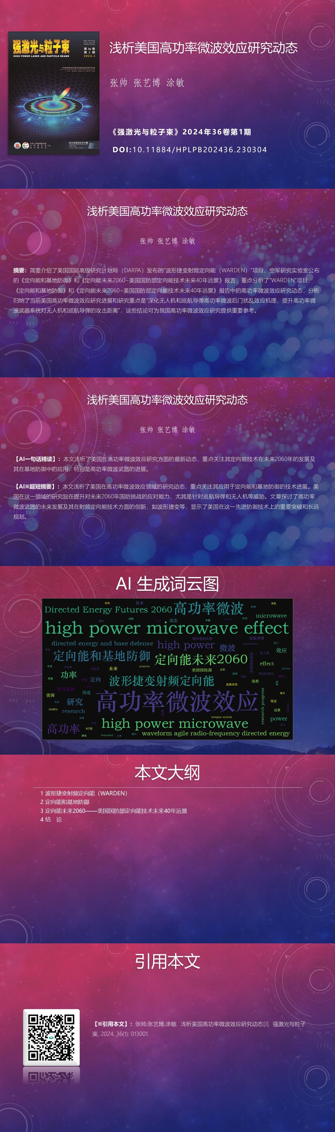 Shuai Zhang, Yibo Zhang, Min Tu. Brief analysis of research trends of high power microwave effect in the United States[J]. High Power Laser and Particle Beams, 2024, 36(1): 013001