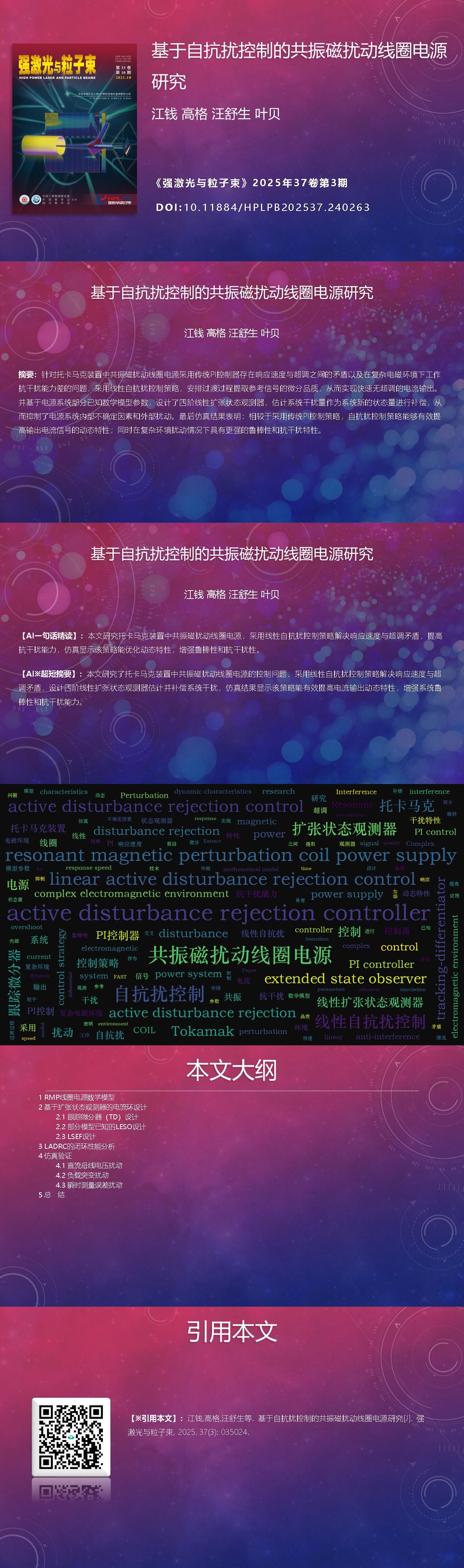 Qian Jiang, Ge Gao, Shusheng Wang, Bei Ye. Research on resonant magnetic perturbation coil power supply based on active disturbance rejection control[J]. High Power Laser and Particle Beams, 2025, 37(3): 035024