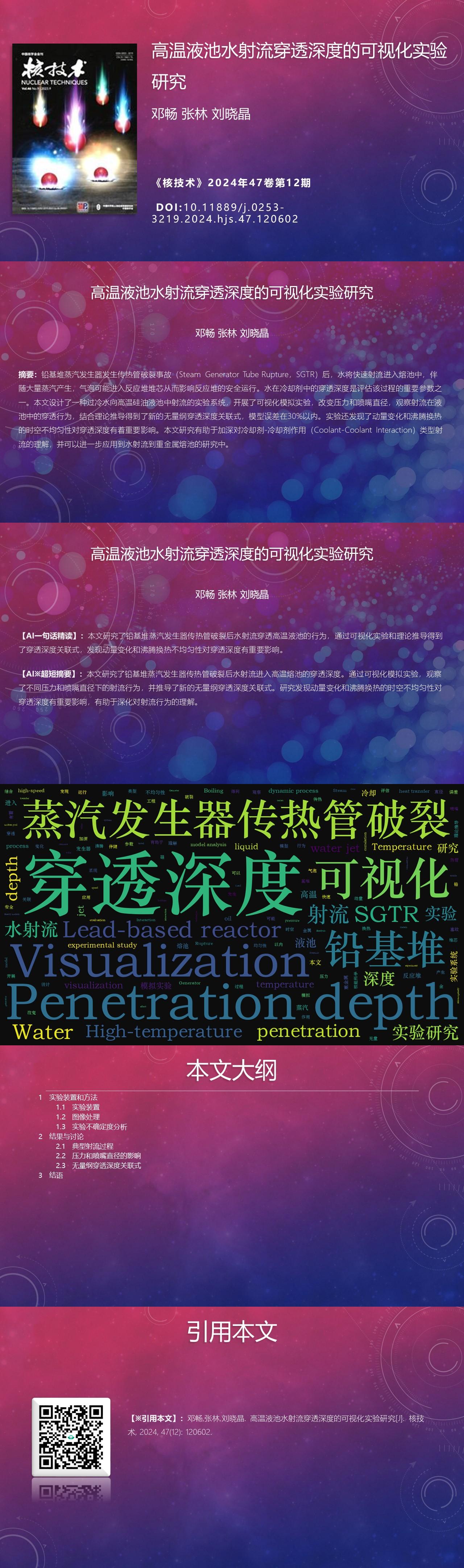 Chang DENG, Lin ZHANG, Xiaojing LIU. Visualization experimental study on penetration depth of water jet into high-temperature liquid pool[J]. NUCLEAR TECHNIQUES, 2024, 47(12): 120602