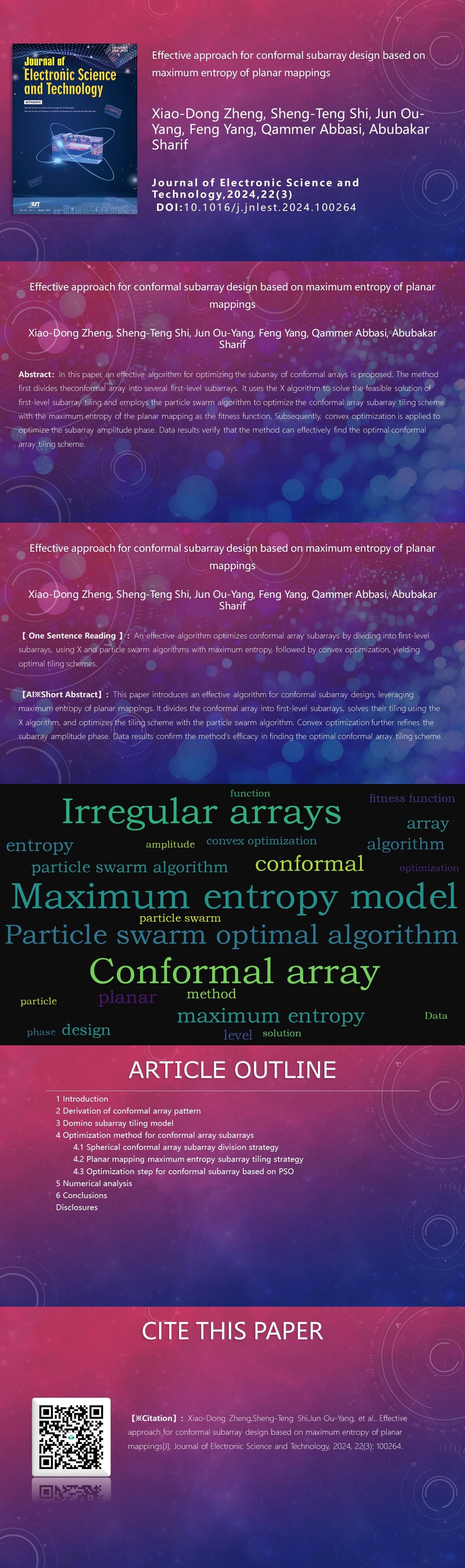 With advancements in related algorithms, irregular arrays using subarray tiling have been favored by scholars. In 2009, Mailloux et al. first used an irregular eight-networked lattice to fill an 18×24 grid [12]. Subsequently, in 2012, Rocca and Mailloux used genetic algorithms to solve the problem of accurate delineation of large-scale arrays [13]. However, their approach resulted in a large number of unfilled voids appearing inside the array, failing to maximize caliber efficiency. To fully utilize the array caliber and prevent voids from appearing, the height function method of dominoes [14] was adopted due to its simple form and ease of coding [15–17], and excellent results were obtained. References [18] and [19] used the X algorithm to optimize the subarray structure design, offering an effective perspective on a subarray scheduling scheme. Furthermore, Anselmi et al. introduced an effective subarray structure using the self-replicating method to achieve the effect of low sublobe at wide angles [20]. While these non-regular designs have been implemented in planar arrays, research on the non-regular subarray design for conformal antennas is relatively scarce. Nevertheless, investigating conformal non-regular subarrays is crucial as it allows for the full exploitation of conformal array characteristics, enabling broader scanning angles and reducing the design costs for conformal arrays, which is very important for the development of the arrays. Therefore, based on the design method for the planar irregular subarray, this paper proposes an effective design method of the conformal subarray, which can reduce the design cost while maximizing the use of conformal array characteristics.