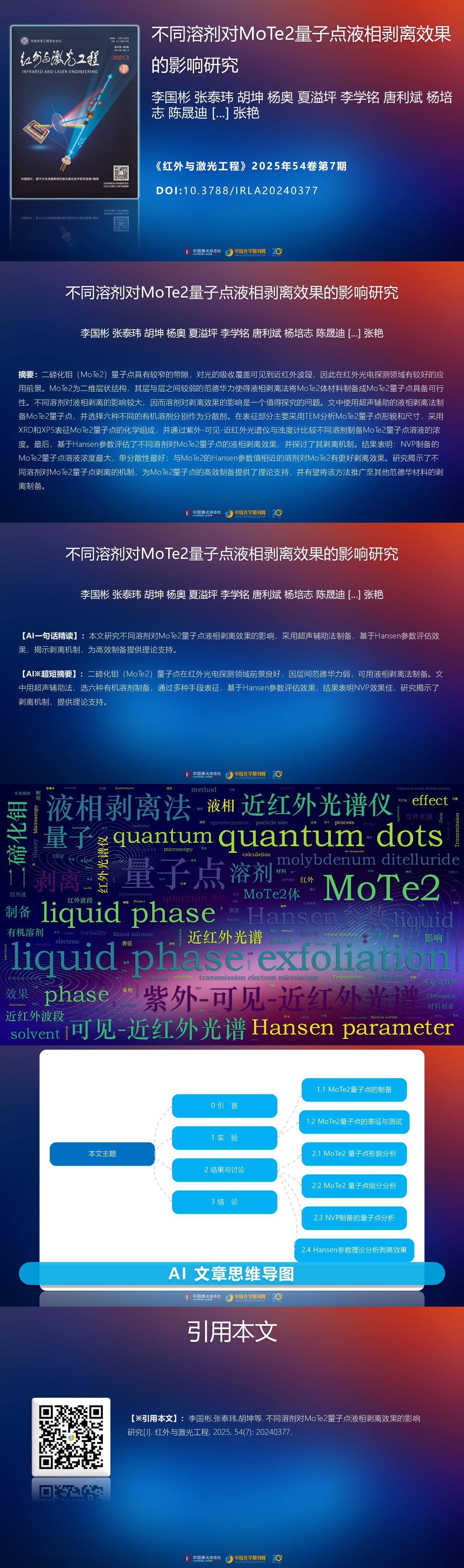 2 quantum dots and nanosheets by liquid phase exfoliation. The kinds of solvent used in the liquid phase exfoliation method play an important role in the preparation process. However, in the related reports, studies about the effect of solvents on the exfoliation effect are rare. Therefore, it is significant to explore the best solvent of liquid phase exfoliation for the preparation of MoTe