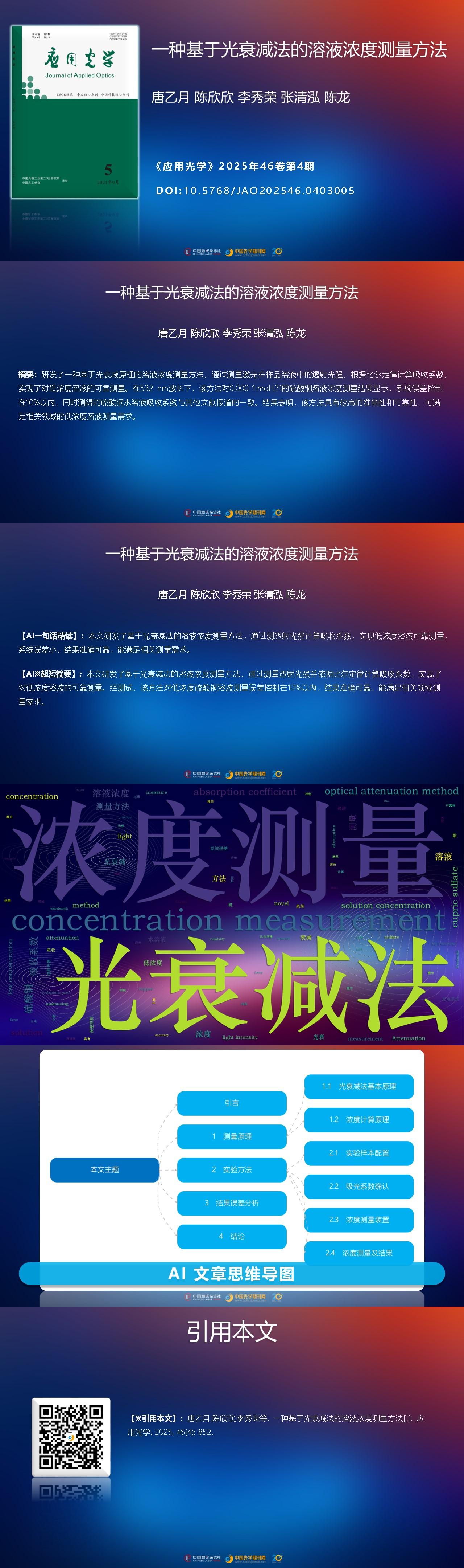 Yiyue TANG, Xinxin CHEN, Xiurong LI, Qinghong ZHANG, Long CHEN. Novel method to measure solution concentration based on light attenuation[J]. Journal of Applied Optics, 2025, 46(4): 852