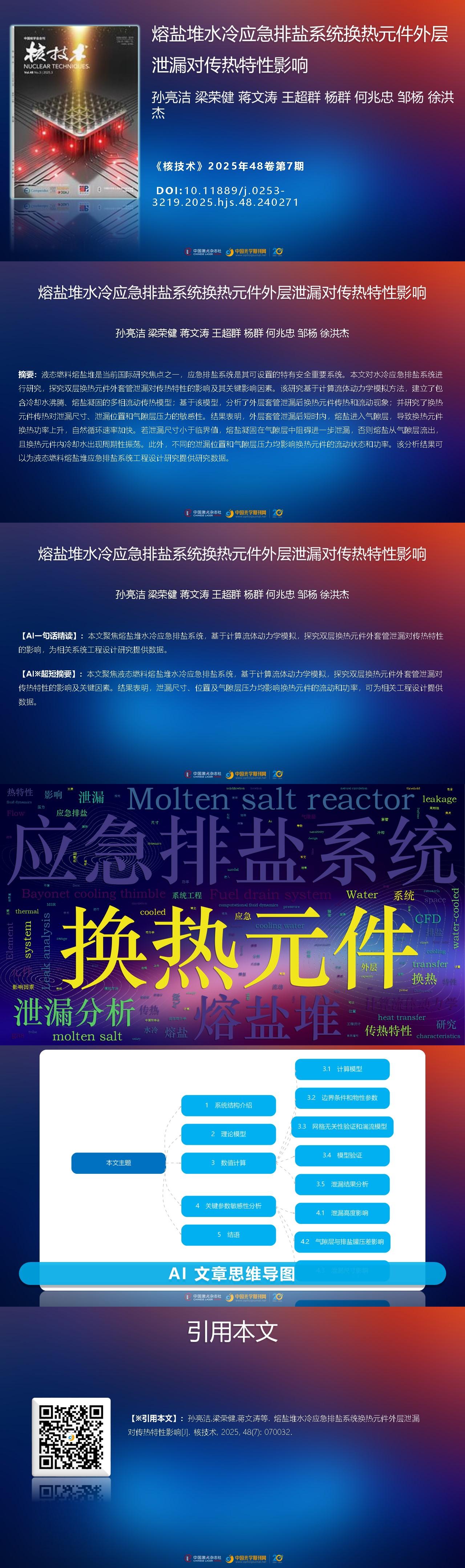 Liangjie SUN, Rongjian LIANG, Wentao JIANG, Chaoqun WANG, Qun YANG, Zhaozhong HE, Yang ZOU, Hongjie XU. Effects of heat exchange element thimble leakage on the thermal transfer characteristics of emergency water-cooled fuel salt drain system of molten salt reactor[J]. NUCLEAR TECHNIQUES, 2025, 48(7): 070032