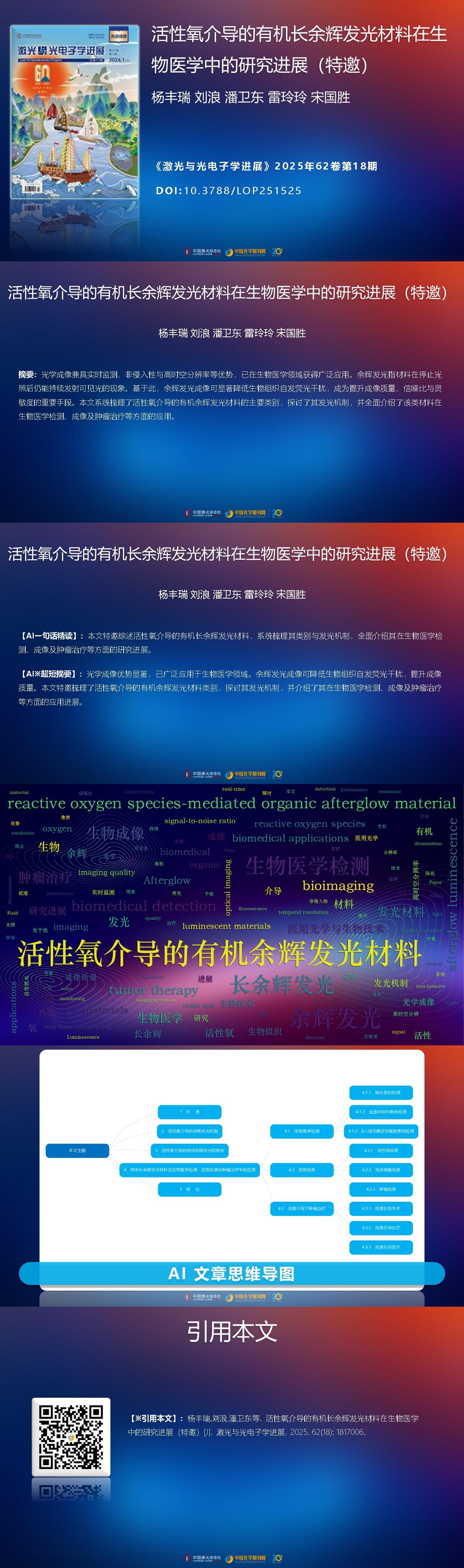 Fengrui² Yang, Lang Liu, Weidong Pan, Lingling Lei, Guosheng Song. Advances in Reactive Oxygen Species-Mediated Organic Afterglow Materials for Biomedical Applications (Invited)[J]. Laser & Optoelectronics Progress, 2025, 62(18): 1817006