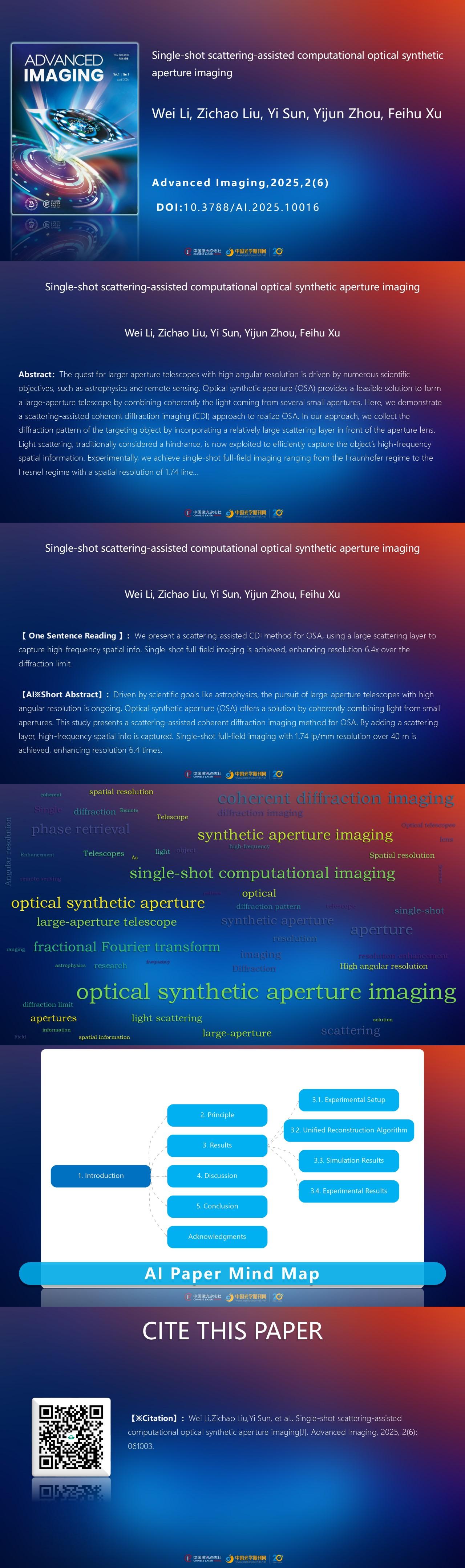 Wei Li, Zichao Liu, Yi Sun, Yijun Zhou, Feihu Xu, "Single-shot scattering-assisted computational optical synthetic aperture imaging," Adv. Imaging 2, 061003 (2025)