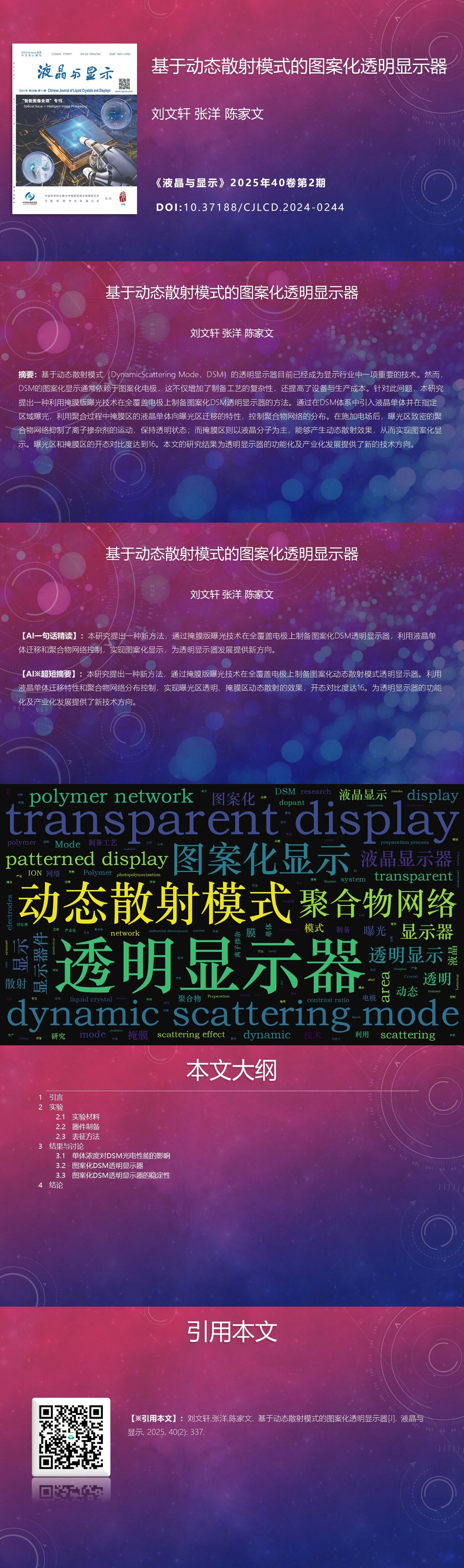 Wenxuan LIU, Yang ZHANG, Jiawen CHEN. Patterned transparent display based on dynamic scattering mode[J]. Chinese Journal of Liquid Crystals and Displays, 2025, 40(2): 337