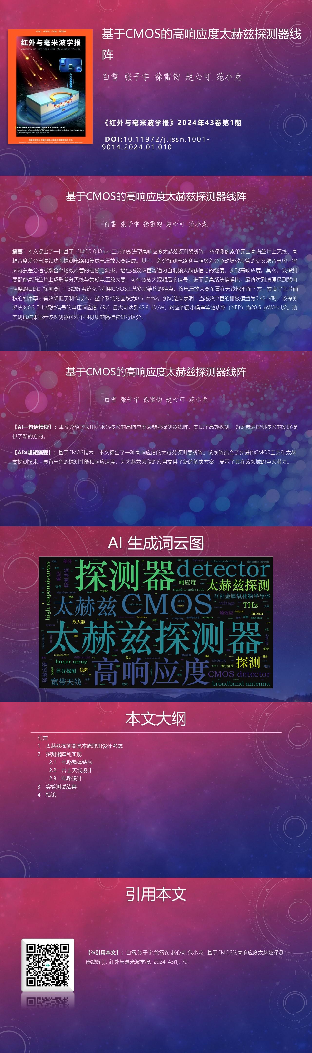 Xue BAI, Zi-Yu ZHANG, Lei-Jun XU, Xin-Ke ZHAO, Xiao-Long FAN. High responsivity Terahertz detector linear array based on CMOS[J]. Journal of Infrared and Millimeter Waves, 2024, 43(1): 70