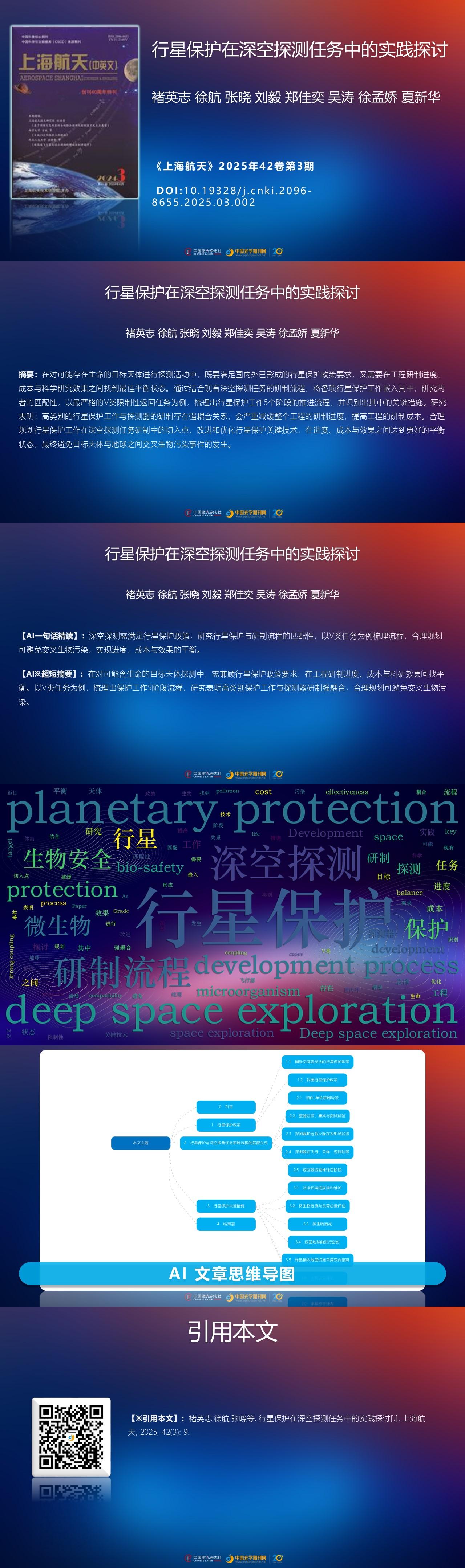 Yingzhi CHU, Hang XU, Xiao ZHANG, Yi LIU, Jiayi ZHENG, Tao WU, Mengjiao XU, Xinghua XIA. Practical Exploration of Planetary Protection in Deep Space Exploration Missions[J]. AEROSPACE SHANGHAI, 2025, 42(3): 9