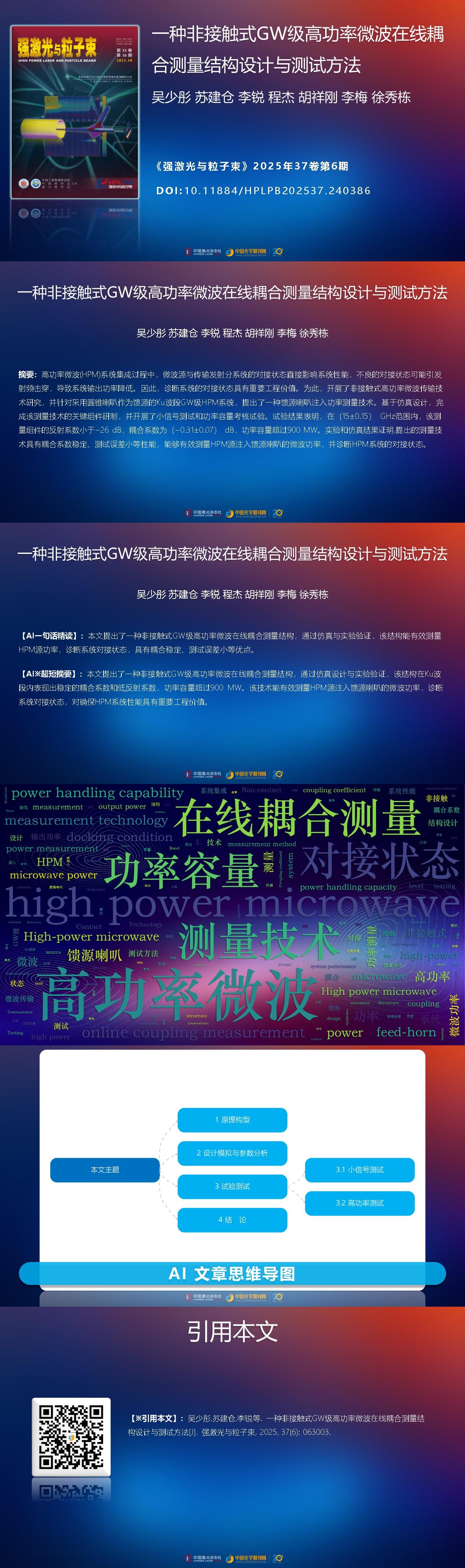 Shaotong Wu, Jiancang Su, Rui Li, Jie Cheng, Xianggang Hu, Mei Li, Xiudong Xu. Design and testing approach of a non-contact GW-level high-power microwave online coupling measurement structure[J]. High Power Laser and Particle Beams, 2025, 37(6): 063003