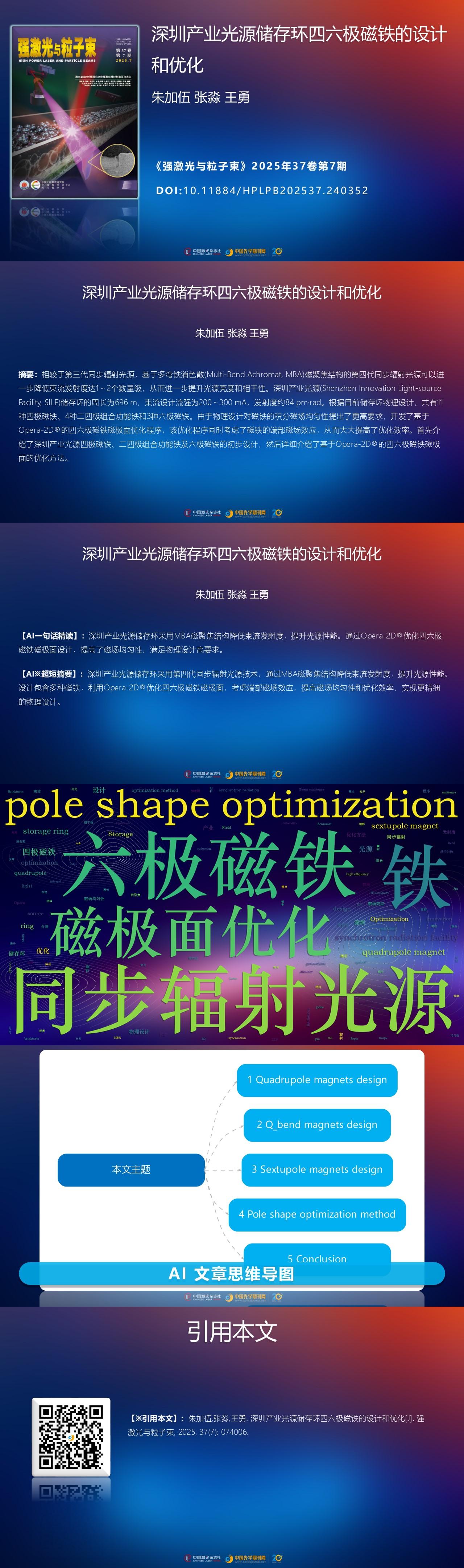 The physics design of SILF storage ring requires high integral field homogeneities for the above magnets of different types, typically lower than 3×10−4 in the good field region (GFR). Therefore, careful design and pole shape optimization should be carried out in the first place. There are some codes or algorithms developed for the multipole magnet pole shape optimization, such as conformal transformation, Poisson, Roxie, etc. However, they mainly focus on the 2D field optimization[3-4]. In this paper, we present a dedicated pole shape optimization procedure for the quadrupole and sextupole magnets using Opera-2D® PYthon script, with consideration of 3D field effect. For easy handling, the field calculation and optimization are fully controlled by the defined parameters and options. It is validated in the updated design of the quadrupole and sextupole magnets for SILF storage ring[5], demonstrating high accuracy, robustness and efficiency. In this paper, the updated designs of the quadrupole, sextupole and Q-Bend magnets are presented first, followed by a detailed description of the pole shape optimization procedure for quadrupole and sextupole magnets.
