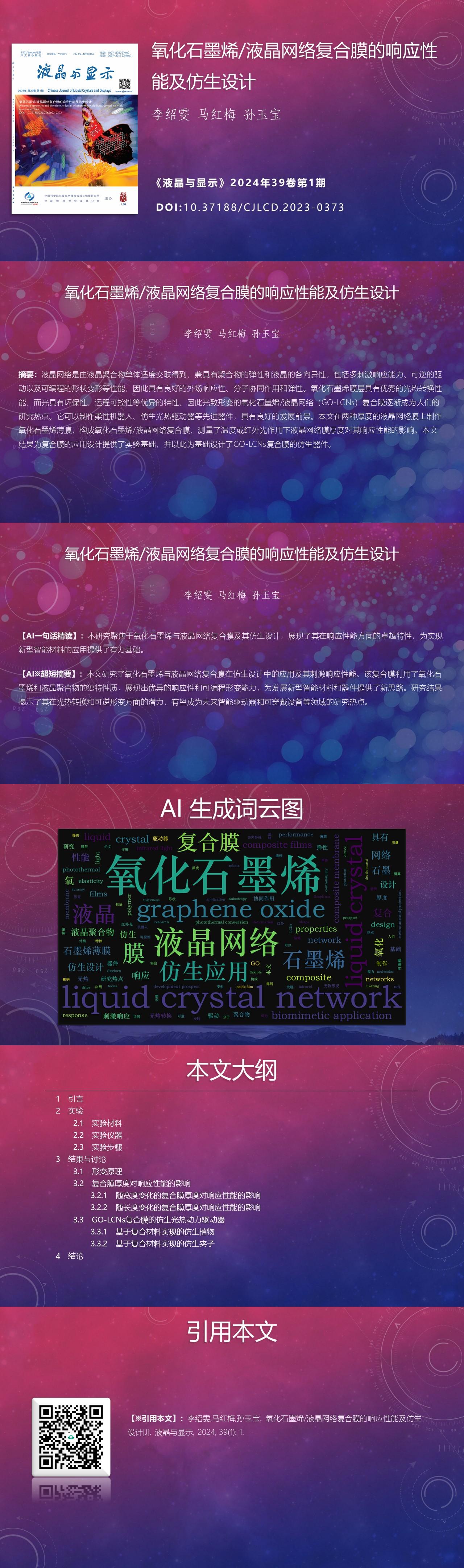Shaowen LI, Hongmei MA, Yubao SUN. Response properties and biomimetic design of graphene oxide/liquid crystal network composite films[J]. Chinese Journal of Liquid Crystals and Displays, 2024, 39(1): 1