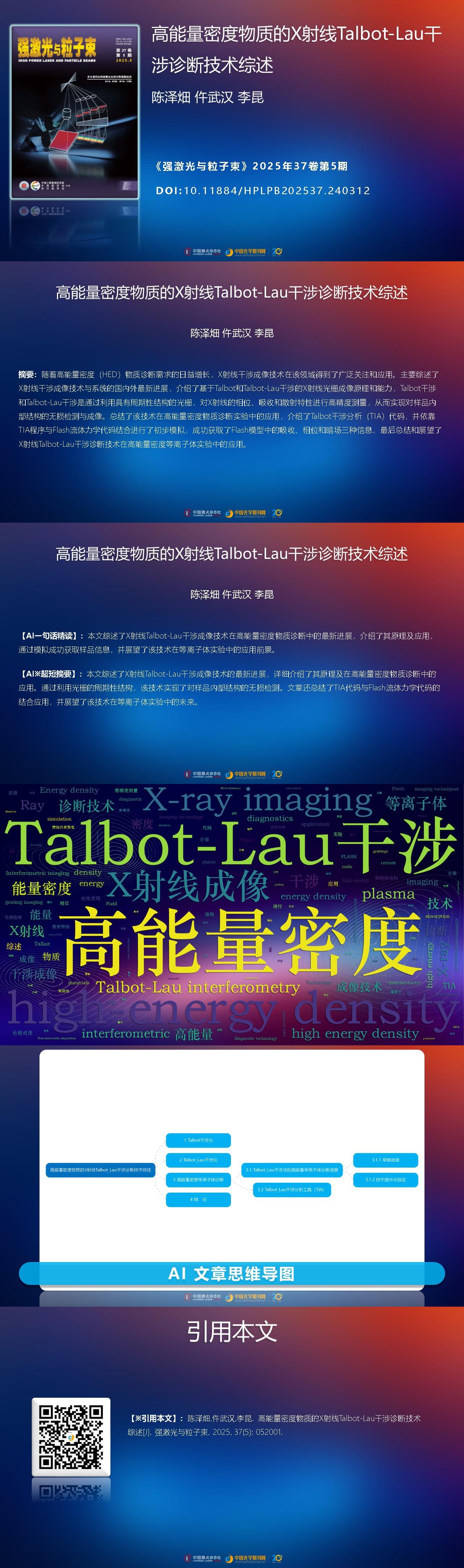 Zetian Chen, Wuhan Wu, Kun Li. Review of X-ray Talbot-Lau interferometric diagnostics for high energy density matter[J]. High Power Laser and Particle Beams, 2025, 37(5): 052001