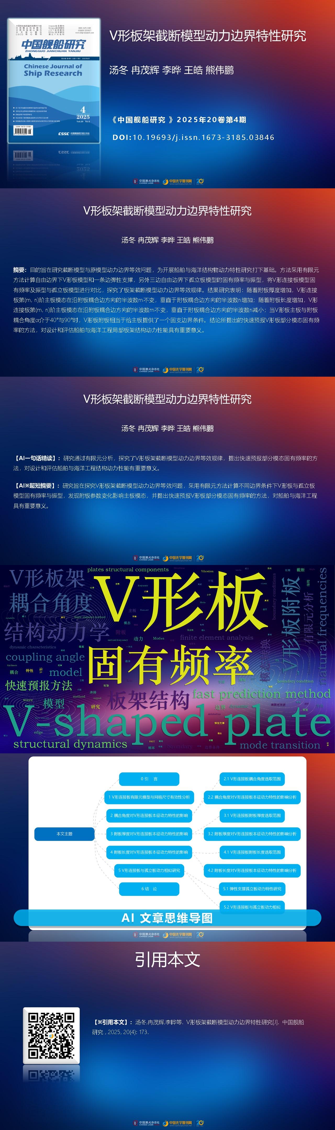 Dong TANG, Maohui RAN, Ye LI, Hao WANG, Weipeng XIONG. Dynamic boundary characteristics for truncated model of V-shaped orthogonally stiffened plates[J]. Chinese Journal of Ship Research, 2025, 20(4): 173