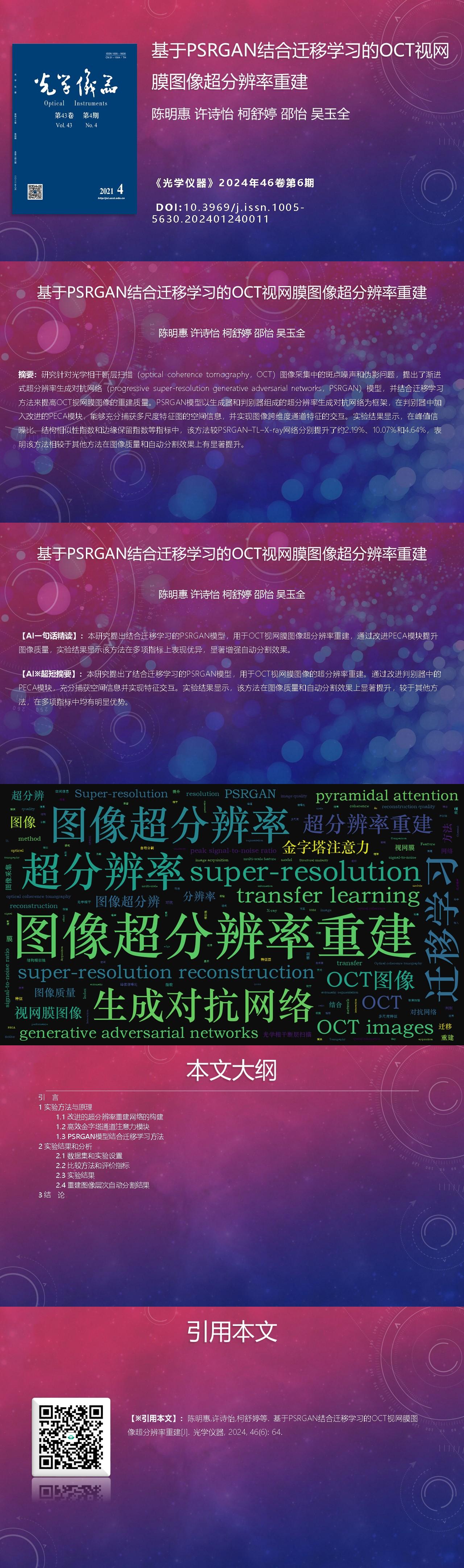 Minghui CHEN, Shiyi XU, Shuting KE, Yi SHAO, Yuquan WU. OCT retinal images super-resolution reconstruction based on PSRGAN and transfer learning[J]. Optical Instruments, 2024, 46(6): 64