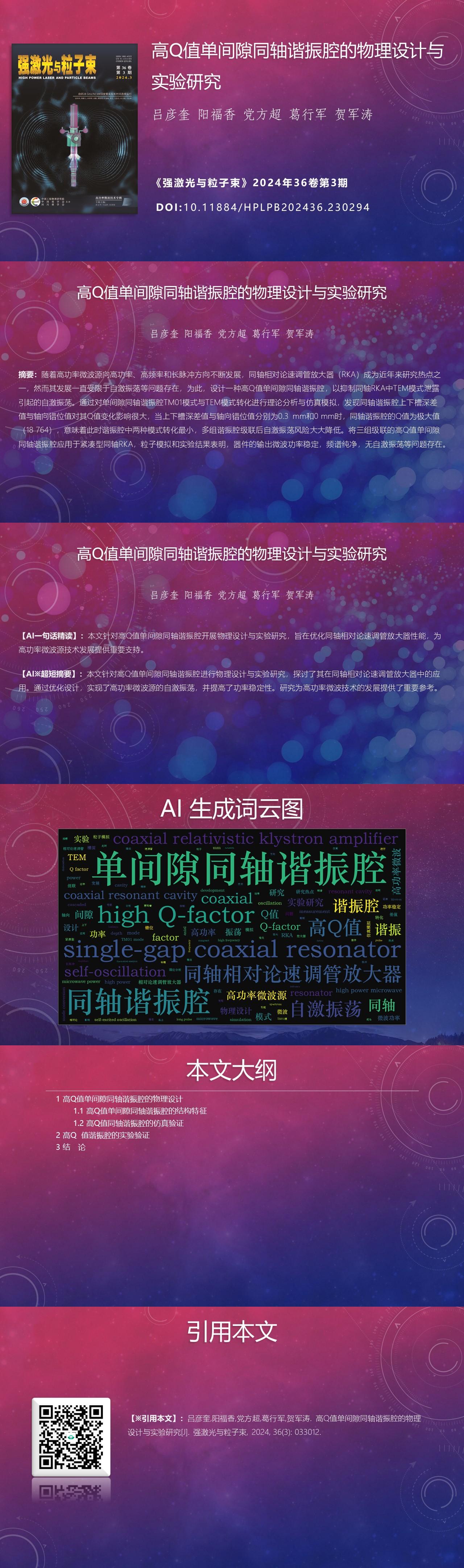 Yankui Lü, Fuxiang Yang, Fangchao Dang, Xingjun Ge, Juntao He. Design and measurement of high Q-factor coaxial resonant cavity[J]. High Power Laser and Particle Beams, 2024, 36(3): 033012