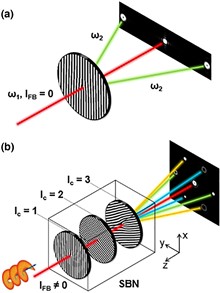 A 3D nonlinear photonic crystal containing four parallel segments of periodic χ(2) grating structure is fabricated employing the femtosecond laser poling of ferroelectric Ca0.28Ba0.72Nb2O6 crystal. The second harmonic generation from this four-segment structure is studied with a fundamental Gaussian wave. By tuning the wavelength of the fundamental wave, the second harmonic varies from the Laguerre–Gaussian beam (topological charge lc = 1) to the higher-order Hermite–Gaussian beam and Laguerre–Gaussian again (lc = -1). This effect is caused by the wavelength-dependent phase delays introduced by the four-grating structure. Our study contributes to a deeper understanding of nonlinear wave interactions in 3D nonlinear photonic crystals. It also offers new possibilities for special beam generation at new frequencies and their control.