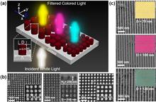Angle tolerant transmissive subtractive color filters incorporating a metasurface exploiting hydrogenated amorphous silicon nanopillars (NPs) on a glass substrate were proposed and demonstrated. The achieved transmission efficiency ranged from 75% to 95% at off-resonance wavelengths. For an NP resonator, electric and magnetic-field distributions in conjunction with absorption cross-sections were investigated to confirm a resonant transmission dip, which is primarily governed by the absorption resulting from simultaneous excitation of magnetic and electric dipoles via Mie scattering. The proposed devices exhibit higher angular tolerance and lower crosstalk for the absorption spectra and, therefore, are applicable with photodetectors, image sensors, and imaging/display devices.