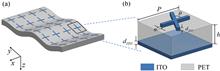 We demonstrate a tunable terahertz (THz) absorber based on an indium tin oxide (ITO) metamaterial. The upper ITO cross-shaped metasurface with different arm lengths is fabricated by direct femtosecond laser etching. The thickness of the middle dielectric layer is only 60 μm, which makes the absorber very transparent and flexible. The experimental results show that the THz resonant peaks have a high performance near 1 THz. By setting spacers of different thicknesses between the middle layer and the ITO mirror, a new type of tunable THz absorber is proposed. Its absorption peak frequency can be continuously adjusted from 0.92 to 1.04 THz between TE and TM polarization. This transparent THz metamaterial absorber is expected to be widely used in THz imaging, sensing, and biological detection.