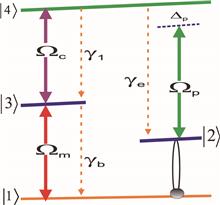 An optomechanical cavity embedded with a V-type three-level atom is exploited to control single-photon transport in a one-dimensional waveguide. The effects of the atom–cavity detuning, the optomechanical effect, the coupling strengths between the cavity and the atom or the waveguide, and the atomic dissipation on the single-photon transport properties are analyzed systematically. Interestingly, the single-photon transmission spectra show multiple double electromagnetically induced transparency. Moreover, the double electromagnetically induced transparency can be switched to a single one by tuning the atom–cavity detuning.