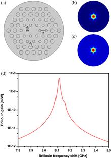 The Brillouin gain properties in a double-clad As2Se3 photonic crystal fiber (PCF) are simulated based on the finite-element method (FEM). The results indicate that the Brillouin gain spectrum (BGS) of our proposed chalcogenide PCF exhibits a multipeaked behavior and has a high Brillouin gain coefficient. We also find that a larger size of inner cladding air holes will lead to a more pronounced second peak in the BGS. On the other hand, the size of the outer cladding has nearly no effect on the BGS behavior. Through these results, one can tailor the Stimulated Brillouin scattering effect in PCFs for a wide range of applications.