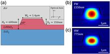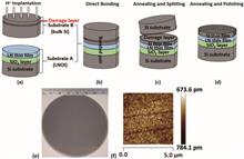 The heterogeneous integration of silicon thin film and lithium niobate (LN) thin film combines both the advantages of the excellent electronics properties and mature micro-processing technology of Si and the excellent optical properties of LN, comprising a potentially promising material platform for photonic integrated circuits. Based on ion-implantation and wafer-bonding technologies, a 3 inch wafer-scale hybrid mono-crystalline Si/LN thin film was fabricated. A high-resolution transmission electron microscope was used to investigate the crystal-lattice arrangement of each layer and the interfaces. Only the H-atom-concentration distribution was investigated using secondary-ion mass spectroscopy. High-resolution X-ray-diffraction ω–2θ scanning was used to study the lattice properties of the Si/LN thin films. Raman measurements were performed to investigate the bulk Si and the Si thin films. Si strip-loaded straight waveguides were fabricated, and the optical propagation loss of a 5-μm-width waveguide was 6 dB/cm for the quasi-TE mode at 1550 nm. The characterization results provide useful information regarding this hybrid material.