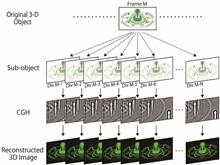 We propose a high-speed playback method for the spatiotemporal division multiplexing electroholographic three-dimensional (3D) video stored in a solid-state drive (SSD) using a digital micromirror device. The spatiotemporal division multiplexing electroholography prevents deterioration in the reconstructed 3D video from a 3D object comprising many object points. In the proposed method, the stored data is remarkably reduced using the packing technique, and the computer-generated holograms are played back at high speed. Consequently, we successfully reconstructed a clear 3D video of a 3D object comprising approximately 1,100,000 points at 60 frames per second by reducing the reading time of the stored data from an SSD.