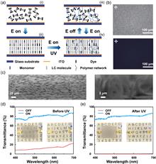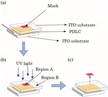 A patterned polymer dispersed liquid crystal transparent display using one-time UV exposure is demonstrated. The device is fabricated by exposing the cell with a uniform UV light through a mask with selective attenuation of the UV light. The voltage-transmittance response of the device is different for the corresponding regions. Thus, three different states of total scattering, patterned transparent, and total transparent can be realized by controlling the applied voltages. The proposed device used in shutter mode as smart windows and in projected display mode is demonstrated, which shows great potential for smart windows with customized patterns or logos and has potential application in the field of projected transparent displays.