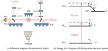 Due to the large distance between the electrons and the nucleus and the large electric dipole moment, the interatomic interaction of the Rydberg atoms are weaker than those of the ground-state atoms. Therefore, the external electric field has a greater influence on the Rydberg atoms. This property leads to the fact that the Rydberg atoms is extremely sensitive to the external electric field. Therefore, electric field measurement based on Rydberg atoms is a hot spot, especially in microwave electric field measurement. In addition, thanks to the long lifetime of the Rydberg atoms, there are possibilities to achieve higher sensitivity beyond classic electric dipole antenna.Enhancement measurement of microwave electric field is demonstrated based on the Electromagnetically Induced Transparency (EIT) effect of the Rydberg atoms, in which a one-dimensional standing wave of coupling light field is formed. This paper presents comprehensive research for measuring microwave electric field based on the coherent enhancement of a one-dimensional standing wave field of coupling light based on the electromagnetic induction effect of Rydberg atoms. A four-level system of cesium atoms at room temperature is constructed. At first, the cesium atoms in the ground-state (6S1/2) are excited to the immediate state (6P3/2) by a diode laser (probe light, ~852 nm). Secondly, a 510 nm laser (coupling light) exits the immediate state atoms to the Rydberg state. The transmission of the probe light, which is derived from the electromagnetic induced transparency effect, is recorded. In an atom vapor cell with an antireflection film coating at the wavelength of coupling light, a one-dimensional standing wave field of coupling light is achieved using a mode-matching reflection optical path. The influence of the coherent enhancement of the one-dimensional standing wave coupling light field on the electromagnetically induced transparency transmission is observed and analyzed. Then, the cesium atoms are coupled with the nearby Rydberg state by the incoming microwave electric field. The microwave electric field in the four-level atomic system causing a splitting of the transmission spectrum of probe laser which is known as Autler-Townes splitting. The coherent enhancement of the one-dimensional standing wave coupling light field on the EIT-AT splitting spectrum is observed, and the strength of microwave electric field with amplitude modulation is measured using the spectrum analyzer.The experimental results have shown that the amplitude and linewidth of the Rydberg electromagnetically induced transparency spectrum is enhanced significantly, in which the one-dimensional standing wave coupling light field is formed. Compared to increasing the output power of the coupling laser, the measurement of amplitude-modulated microwave electric field is investigated with the one-dimension standing wave in detail. The results show that for the lower-power microwave electric field, the signal-to-noise ratio is improved by about 4 dB and the instantaneous bandwidth is increased by 1.38 times in the one-dimensional standing wave field. A flatter frequency response is obtained for higher-power microwave electric field, while an apparent bimodal frequency response curve is observed without a standing wave field. The coherent power enhancement at the propagating direction of coupling light and the detuning of the probe and coupling light induced by Doppler effect are responsible for improving the signal-to-noise ratio and flattening frequency response curve. The precision measurement of microwave electric field is attributed to a frontier research field that can be applied to developing microwave communication and radar. The coherent enhancement of Rydberg atoms EIT one-dimensional standing wave coupling light field can be adopted as a new method to develop the electric field probe (sensor) with low power consumption, flat frequency response curve and high dynamic range, which will be significant for the development and the application of the corresponding metrological standard.
