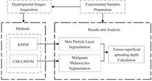 This paper presents an automatic approach for measurement of the superficial spreading depth of cutaneous melanomas based on microscopic hyperspectral imaging technology. To extract the skin granular layer, an edge detection method combined with kernel minimum noise fraction is proposed. Then least squares support vector machine based on characteristic spectrum supervision is used to identify malignant melanocytes. The measurement of tumor superficial spreading depth depends on the vertical distance from the skin granular layer to the deepest malignant melanocytes. Experimental results illustrate that the proposed method is possible to provide an effective reference for the diagnosis and treatment of cutaneous melanoma.