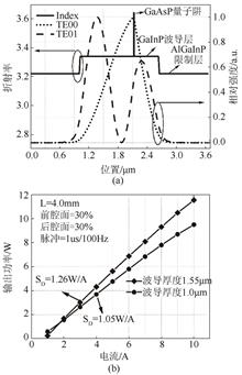 To satisfy the need of Thulium-doped fiber laser pump source, 793 nm high-power semiconductor laser emitters and fiber-coupled module were developed. The laser epitaxy adopts the large asymmetric optical cavity waveguide structure to reduce the mode loss. The waveguide adopts aluminum free GaInP material which improves the facet damaged threshold combined with vacuum cleavage passivation process. Through the optimization of epitaxial structure and facet coating, the output power of the developed laser reaches 12 W@11A, passed the 300 h aging test of 8 W. Seven single emitters were space coupled to 100 μ m 0.22 NA fiber modules. The output power of the model is 40 W@7A, and the electro-optical efficiency is 49.5% @ 40 W.