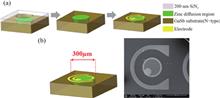 Emission and capture characteristics of a deep hole trap (H1) in n-GaN Schottky barrier diodes (SBDs) have been investigated by optical deep level transient spectroscopy (ODLTS). Activation energy (Eemi) and capture cross-section (σp) of H1 are determined to be 0.75 eV and 4.67 × 10?15 cm2, respectively. Distribution of apparent trap concentration in space charge region is demonstrated. Temperature-enhanced emission process is revealed by decrease of emission time constant. Electric-field-boosted trap emission kinetics are analyzed by the Poole?Frenkel emission (PFE) model. In addition, H1 shows point defect capture properties and temperature-enhanced capture kinetics. Taking both hole capture and emission processes into account during laser beam incidence, H1 features a trap concentration of 2.67 × 1015 cm?3. The method and obtained results may facilitate understanding of minority carrier trap properties in wide bandgap semiconductor material and can be applied for device reliability assessment.