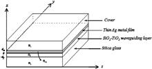 A new integrated plasmonic waveguide sensor is reported with high sensitivity (1600 nm/RIU). The integrated structure, loaded with stratified composite, makes this device robust and easy to fabricate on a chip to use as a sensor probe. The device works on the principle of resonant coupling between surface plasmon and fundamental TM mode. By selecting proper stratified structure (metal–dielectric) and core glass, one can tune the sensitivity and the range of operating wavelength.