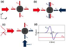 We analyze the properties of a dual-beamtrap of orthogonally intersecting beams in the geometrical optics regime. We derive analytical expressions for the trapping location and stability criteria for trapping a microparticle with uncollimated Gaussian beams. An upper limit for the beam waist is found. Optical forces and particle trajectories are calculated numerically for the realistic case of a microparticle in intersecting liquid-core waveguides.