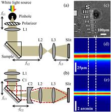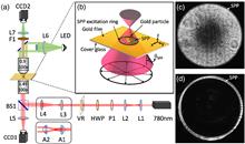We show that Fourier-plane imaging in conjunction with the Kretschmann–Raether configuration can be used for measuring polariton dispersion with spatial discrimination of the sample, over the whole visible spectral range. We demonstrate the functionality of our design on several architectures, including plasmonic waveguides, and show that our new design enables the measurement of plasmonic dispersion curves of spatially inhomogeneous structures with features as small as 3 μm, in a single shot.