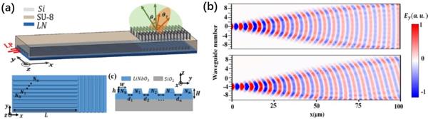 As a proof of concept, researchers have developed POPA based on LN waveguide arrays without/with metasurface to realize horizontal and transverse beam scanning in communication band by port switching and wavelength sweeping. Figure 2 shows the experimental results of without metasurface, which realize the ±21.27°lateral beam scanning.