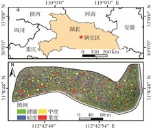 Pine wilt disease is a devastating pine disease, which seriously threatens forest ecological security. Timely and reliable acquisition of the extent and severity of pine wilt disease is very important for forest management and disease prevention and control. However, pine wilt disease spreads rapidly and is difficult to control, and the traditional manual survey methods can hardly meet the demand. Unmanned Aerial Vehicle (UAV) remote sensing can quickly and accurately obtain the extent and severity of forest diseases, and provide reliable information support for forest pest control and management. In this study, UAV was used to acquire high-resolution Red-Green-Blue (RGB) visible light images. Firstly, object-oriented multi-scale segmentation algorithm was used to extract the crown of a single tree, and Vegetation Index (VIs) and texture (GLCM) features were calculated. Then the feature selection algorithm was used to optimize the feature set, and Random Forest (RF) classification and Support Vector Machine (SVM) classification algorithm were used to construct the pine wilt disease classification model based on different feature sets. Through the ablation experiment, the optimal classification model was selected and the object-oriented method was used to monitor the disease degree and spatial distribution of pine wilt disease. The results show that the vegetation index and texture features of pine canopy with different disease degrees are different on the object-oriented single tree crown scale, and the accuracy of classification results using vegetation index was better than texture characteristics (VIs RF:OA=76.52%,Marco-F1=0.77;SVM:OA=79.68%,Marco-F1=0.79). Compared with a single feature set, the combination of vegetation index and texture features can significantly improve the classification accuracy (VIs&GLCM RF:OA=79.47%,Marco-F1=0.80;SVM:OA=85.45%,Marco-F1=0.85), indicating that multi-feature combination can effectively improve the pine wilt disease classification. The SVM model outperforms the RF model for classification, both for single feature set modeling and combined feature set modeling. This study provides timely and reliable information to support a comprehensive grasp of the extent and severity of pine wilt disease, and helps to promote the construction of a major forestry pest control system and maintain ecological security.