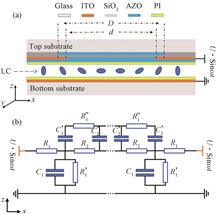 A thin film dielectric layer was used to separate the floating electrode and the mode control electrode. The floating electrode and the mode control electrode were on the same side of the substrate, which avoided the restriction of using a thin substrate. Comsol Multiphysics software was used to simulate the influence of the square resistance of floating electrode and the thickness of thin film on the wavefront error of liquid crystal lens. For the liquid crystal lens with a diameter of 2 mm, when the square resistance of floating electrode varies from 150 Ω·□-1 to 300 MΩ·□-1, the wavefront error of liquid crystal lens decreases first and then increases, and reaches a minimum value at 40 MΩ·□-1. When the thickness of the dielectric layer varies from 50 nm to 5 000 nm, the square resistance of the floating electrode with the smallest wavefront error decreases from 50 MΩ·□-1 to 2 MΩ·□-1, and the optimal square resistance parameters decrease monotonically. When the square resistance of floating electrode is 40 MΩ·□-1 and the thickness of dielectric layer is 250 nm, the focusing characteristics and wavefront error characteristics of liquid crystal lens are studied. When the focal length varies from 250 mm to infinity, the maximum root mean square error of wavefront at 589 nm is 0.041 2 μm, less than λ/14, which satisfy the Marechal criterion.
