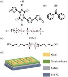 Organic semiconductor materials exhibit promising prospects for flexible device applications due to their excellent solution processability and superior charge transport performance. This work proposed a method for preparing a stretchable organic semiconductor material. By using benzophenone as a photoinitiator, the conjugated polymer 3,6-dithiophene-2-yl-2,5-dihydropyrrolo [3,4-c] pyrrole-1,4-diketone (4Si) was crosslinked with polydimethylsiloxane. The alterations in the electrical and mechanical properties of the polymer films were thoroughly investigated on both pre- and post-crosslinking. Compared to the uncrosslinked 4Si and blend films, the electrical properties of the crosslinked films slightly decreased, while the mechanical properties were enhanced. The crack onset-strain has increased from 30% to 50%. Furthermore, at 100% strain, the crosslinked film exhibited a mobility of 0.36 cm2·V-1·s-1 in the parallel strain direction, which is 1.44 times higher than the initial mobility.