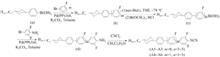 At present, the liquid crystal materials used in microwave phase shifters are mostly high birefringence polybiphenyls or polyphenylacetylene liquid crystal compounds as the main components. But these liquid crystal compounds inevitably have some disadvantages such as large viscosity, slightly higher dielectric loss or poor photothermal stability. The trans-cyclohexyl(tri)biphenyl liquid crystal compounds with relatively low viscosity and high thermal stability are widely used in displays devices,but their microwave dielectric properties studies have been fewer reported. In this paper, six compounds of trans-cyclohexylbiphenyl and tri-biphenyl isothiocyanate were synthesised selectively, and their liquid crystal phase and microwave (10~30 GHz) dielectric properties were tested. Their dipole moments and polarizabilities were calculated by molecular simulation using density functional theory (DFT), and compared with the properties of the related polybiphenyl liquid crystal compounds to explore the effect of the trans-cyclohexyl structure on the microwave dielectric properties of liquid crystal molecules. The experimental results show that the isothiocyanato-trans-cyclohexyl (tri)biphenyl liquid crystal compounds not only have relatively low melting points (<90 ℃) and wide nematic temperature ranges (86~160 ℃), but also have low maximum dielectric losses (?≤7.25×10-3) at 10~30 GHz, which makes their microwave quality factors relatively high (η≥30) and suitable to be used as effective components in microwave-usable liquid crystal materials.