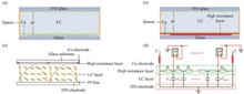 Liquid crystal lenses have the advantages of compact structure, high integration, and adjustable focal length. This article proposes a method for preparing a liquid crystal micro lens array (LCMLA) with modal control for integrated imaging 3D display. Firstly, the influence of voltage amplitude and frequency on the potential distribution of liquid crystal lenses without and with high resistance layers was analyzed using simulation software COMSOL Multiphysics. Secondly, a transparent high resistance layer of polymer poly (3,4-ethylenedioxythiophene): polystyrene sulfonate (PEDOT∶PSS) and polyvinyl alcohol (PVA) was fabricated on a copper circular hole array electrode. And a comparative experiment was conducted to verify it, the experimental results show that the LCMLA without adding a high resistance layer changes the focal length from ∞ to 25.8 mm and the response speed is 645.7 ms when the voltage changes from 0 to 40 V at a fixed sine wave frequency of 1 kHz. The LCMLA with modal control incorporating a high resistance layer can adjust the lens characteristics by changing either the amplitude or frequency of the driving voltage. When the fixed frequency is 75 kHz, the voltage changes from 0 to 5 V, the focal length changes from ∞ to 19.5 mm, and the response speed is 621.4 ms. When the fixed voltage is 5 V, the frequency changes from 1 kHz to 75 kHz, the focal length changes from ∞ to 19.5 mm, and the response speed is 146.4 ms. Applying the prepared LCMLA with modal control to integrated imaging 3D display can achieve good 3D display effect and fast switching characteristics at low voltage.